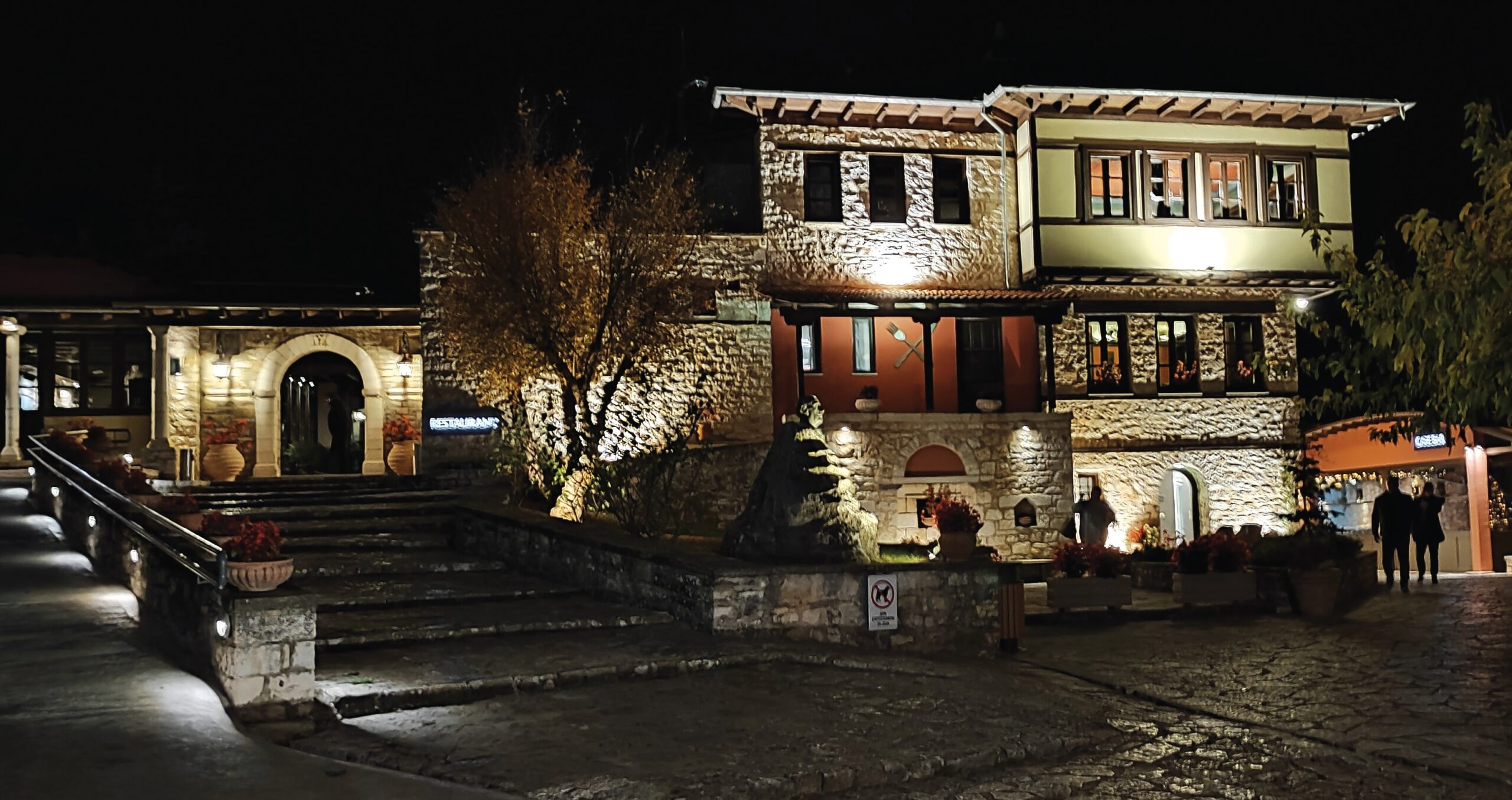 Σκαρφαλωμένη στον λόφο της Αγίας Τριάδας, μόλις ένα χιλιόμετρο από το κέντρο της πόλης των Ιωαννίνων, η Φρόντζου Πολιτεία δεν είναι ένα απλό εστιατόριο — είναι ένα πολύπλευρο συγκρότημα που αποτελεί μνημείο πολιτισμού, ξενοδοχείο, εστιατόριο, καφέ-μπαρ, συνεδριακό κέντρο και παιδότοπο. Η ιστορία του τόπου ανάγεται σε όραμα που ξεκίνησε τη δεκαετία του 1960, όταν ο τότε πολιτικός και νομικός Κωνσταντίνος Φρόντζος οραματίστηκε έναν χώρο αναψυχής και πολιτισμού μέσα στο αισθητικό δάσος των Ιωαννίνων — ως μια «πύλη» για τη φύση, την παράδοση και την τοπική ταυτότητα.