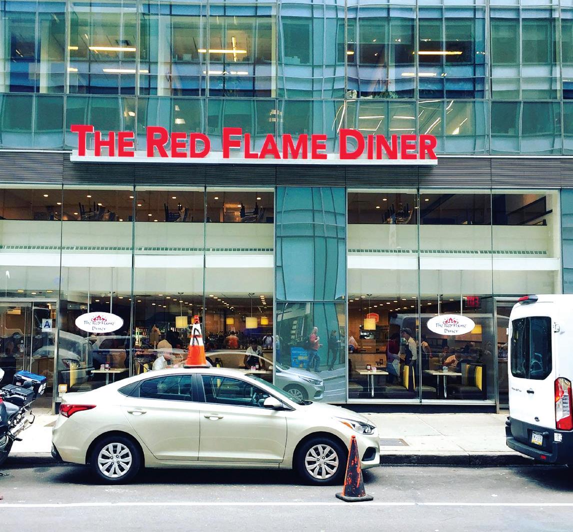 Στην καρδιά του Μανχάταν, στην οδό West 44th Street και σε μικρή απόσταση από την Times Square και τα ιστορικά θέατρα της Broadway Theater District, βρίσκεται το Red Flame Diner, ένα από τα πιο γνωστά παραδοσιακά diners της Νέας Υόρκης.
