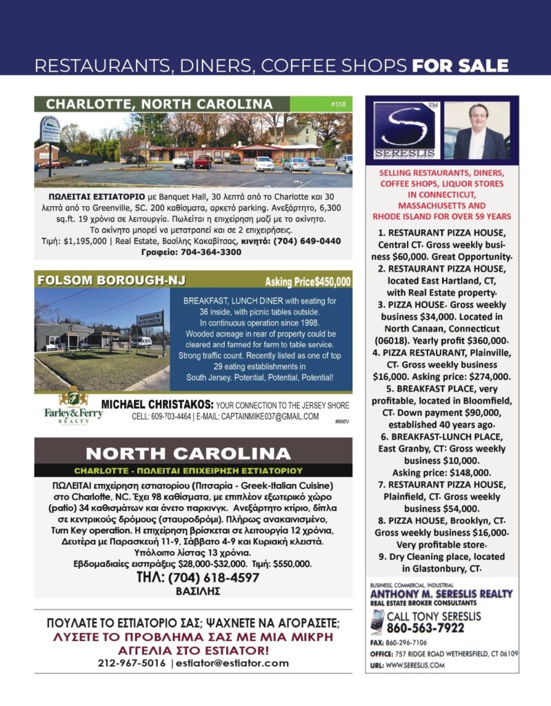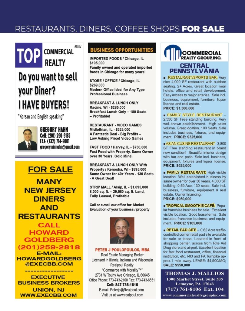 Homes, Buildings, Apartments, Restaurants, Diners, Coffee Shops FOR SALE – May 2024