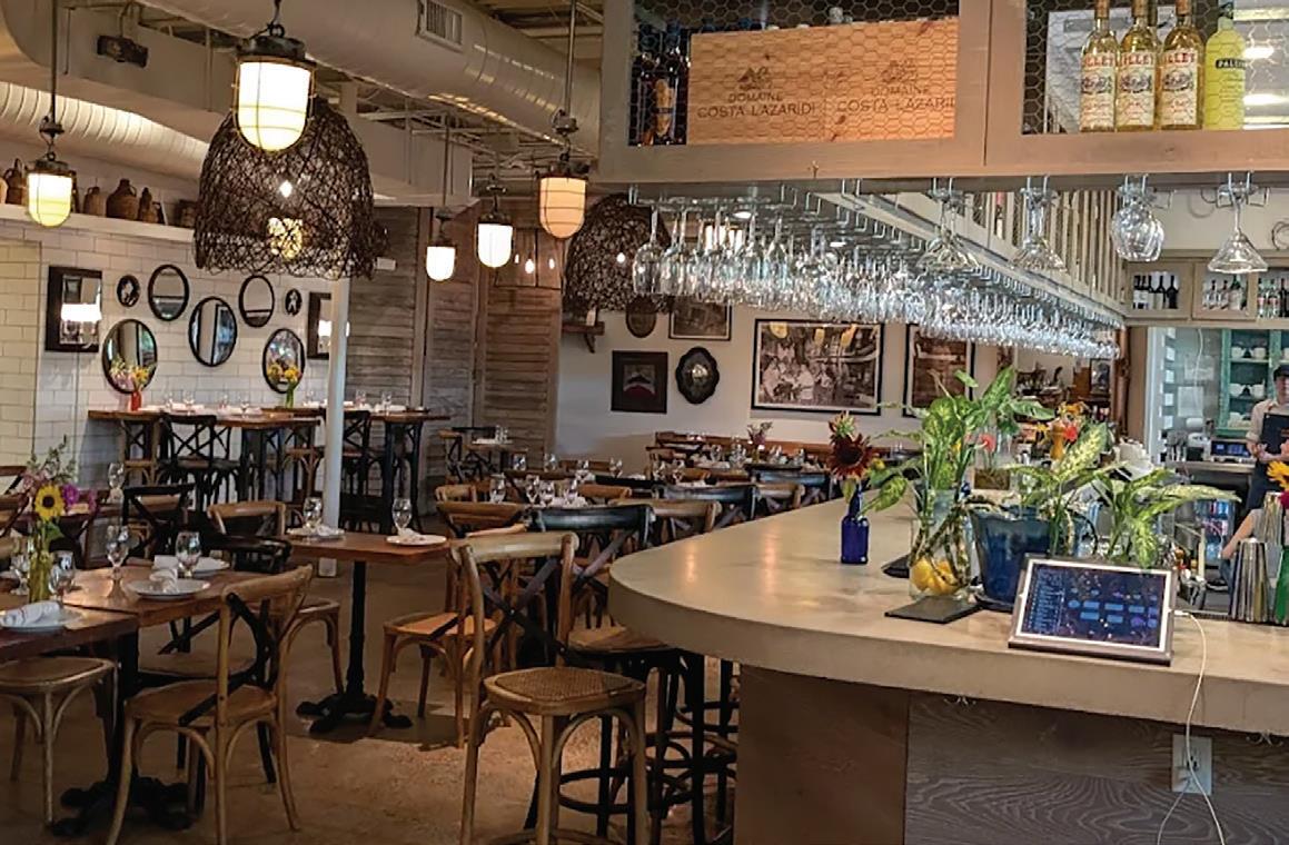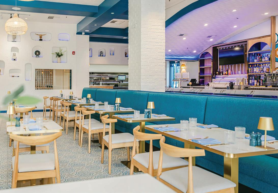 “Modern Greek” at this newcomer means lamb meatballs, grilled branzino, Greek salad, eggplant plates, and house-made pita, alongside signature cocktails like Fields of Greece, with vodka, ouzo, lemon, honey and lavender.